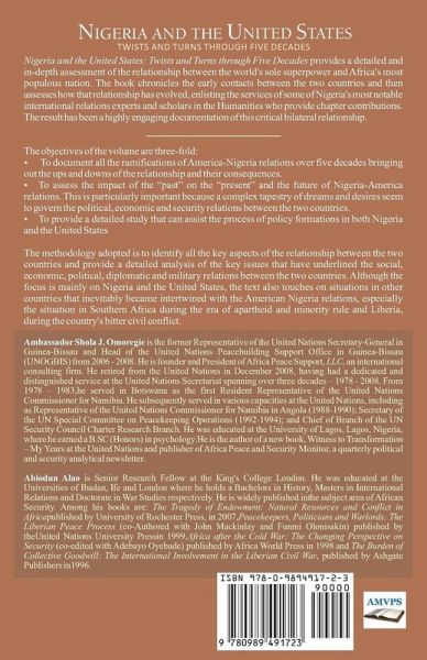 Nigeria and the United States: Twists and Turns through Five Decades provides a detailed and in-depth assessment of the relationship between the world's sole superpower and Africa's most populous nation. The book chronicles the early contacts between the two countries and then assesses how that relationship has evolved, enlisting the services of some of Nigeria's most notable international relations experts and scholars in the Humanities who provide chapter contributions. The result has been a highly engaging documentation of this critical bilateral relationship. The objectives of the volume are three-fold: ¿ To document all the ramifications of America-Nigeria relations over five decades bringing out the ups and downs of the relationship and their consequences. ¿To assess the impact of the "past" on the "present" and the future of Nigeria-America relations. This is particularly important because a complex tapestry of dreams and desires seem to govern the political, economic and security relations between the two countries. ¿ To provide a detailed study that can assist the process of policy formations in both Nigeria and the United States The methodology adopted is to identify all the key aspects of the relationship between the two countries and provide a detailed analysis of the key issues that have underlined the social, economic, political, diplomatic and military relations between the two countries. Although the focus is mainly on Nigeria and the United States, the text also touches on situations in other countries that inevitably became intertwined with the American Nigeria relations, especially the situation in Southern Africa during the era of apartheid and minority rule and Liberia, during the country's bitter civil conflict.