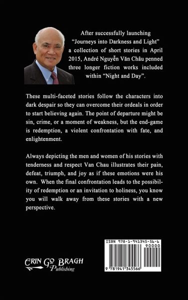 After successfully launching "Journeys into Darkness and Light" a collection of short stories in April 2015, André Nguy¿n V¿n Châu penned three longer fiction works included within "Night and Day". These multi-faceted stories follow the characters into dark despair so they can overcome their ordeals in order to start believing again. The point of departure might be sin, crime, or a moment of weakness, but the end-game is redemption, a violent confrontation with fate, and enlightenment. Always depicting the men and women of his stories with tenderness and respect Van Chau illustrates their pain, defeat, triumph, and joy as if these emotions were his own. When the final confrontation leads to the possibility of redemption or an invitation to holiness, you know you will walk away from these stories with a new perspective.
