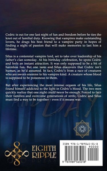 Cedric is out for one last night of fun and freedom before he ties the knot out of familial duty. Knowing that vampires make outstanding lovers, he drags his best friend to a vampire party in hopes of finding a night of passion that will make memories to last him a lifetime. Silus is a centennial vampire lord, set to take over leadership of his father's clan someday. At his birthday celebration, he spots Cedric and feels an instant attraction. It was only supposed to be a bit of harmless fun. But one taste and Silus discovers that Cedric isn't human, as he'd assumed. In fact, Cedric's from a race of creatures who are sworn enemies to his vampire kind. A creature whose blood is supposed to be poisonous to them. But after experiencing the most intense orgasm of his life, Silus found himself addicted to the light in Cedric's blood. The two men quickly realize that one night could never be enough. Forced to face their families and overcome generations of strife, Cedric and Silus must find a way to be together - even if it means war.