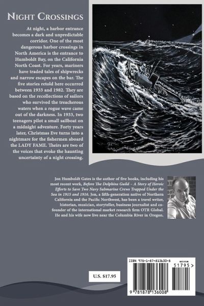 At night, a harbor entrance becomes a dark and unpredictable corridor. One of the most dangerous harbor crossings in North America is the entrance to Humboldt Bay, on the California North Coast. For years, mariners have traded tales of shipwrecks and narrow escapes on the bar. The five stories retold here occurred between 1933 and 1982. They are based on recollections of sailors who survived the treacherous waters when a rogue wave came out of the darkness. In 1933, two teenagers pilot a small sailboat on a midnight adventure. Forty years later, Christmas Eve turns into a nightmare for the fishermen aboard the LADY FAME. Theirs are two of the voices that evoke the haunting uncertainty of a night crossing.