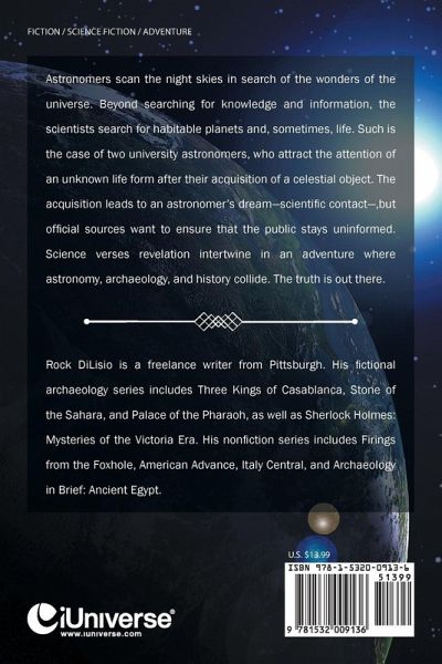 Astronomers scan the night skies in search of the wonders of the universe. Beyond searching for knowledge and information, the scientists search for habitable planets and, sometimes, life. Such is the case of two university astronomers, who attract the attention of an unknown life form after their acquisition of a celestial object. The acquisition leads to an astronomer's dream-scientific contact-,but official sources want to ensure that the public stays uninformed. Science verses revelation intertwine in an adventure where astronomy, archaeology, and history collide. The truth is out there.