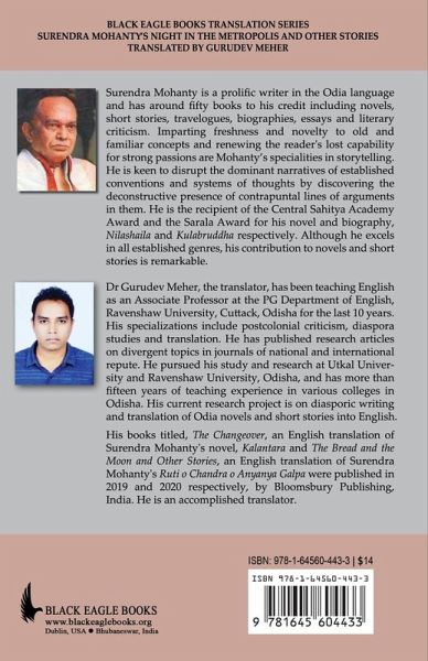 Originally written in Odia, Night in the Metropolis and Other Stories is a classic of modern Indian literature. This captivating collection of short stories features an impressive range of the author's content, form, theme, and style. Mohanty skillfully develops his characters through dialogue and narration, finding an appropriate 'objective correlative' to represent human emotion and sensibility. He uses an impressionistic, non-linear narrative technique that does not impose a moral judgment on the reader. Instead, it provides ample opportunities to think, judge, and conclude without relying on authorial comments. Most of the stories in this collection are inspired by youthful enthusiasm and exuberance, seeking to portray the ideals of revolution and freedom imagined in youth. Others are notable for their general suggestiveness, encompassing a broad human vision, gentle intellectuality, and subtle satire.The stories in this book portray the author's personal experiences with life and delve into varied ethical concerns and convictions, evoking a profound sense of justice and humanity. The act of writing also provides a therapeutic release from emotional turmoil. Night in the Metropolis and Other Stories is an artistic expression of Surendra Mohanty's socio-cultural fervour. It effectively expresses his broad perspective on humanity and his fervent revolutionary spirit.