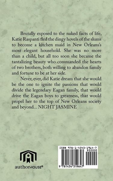 TWO MEN...ONE LOVE... Brutally exposed to the naked facts of life, Katie Raspanti fled the dingy hovels of the slums to become a kitchen maid in New Orleans's most elegant household. She was no more than a child, but all too soon she became the tantalizing beauty who commanded the hearts of two brothers, both willing to abandon family and fortune to be at her side. Never, ever, did Katie dream that she would be the one to ignite the passions that would divide the legendary Eagan family, that would drive the Eagan boys to greatness, that would propel her to the top of New Orleans society and beyond... NIGHT JASMINE