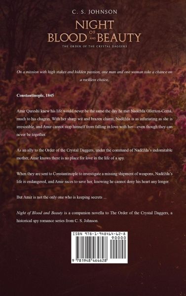 Long before Amir taught Eleanora the harder truths of life, he learned them as he fell in love with her mother. CONSTANTINOPLE, 1845 Amir Qureshi knew his life would never be the same the day he met Nad¿da Ollerton-Cerná, much to his chagrin. With her sharp wit and brazen charm, Nad¿da is as infuriating as she is irresistible, and Amir cannot stop himself from falling in love with her-even though they can never be together. As an ally to the Order of the Crystal Daggers, under the command of Nad¿da's indomitable mother, Amir knows there is no place for love in the life of a spy. When they are sent to Constantinople to investigate a missing shipment of weapons, Nad¿da's life is endangered, and Amir races to save her, knowing he cannot deny his heart any longer. But Amir is not the only one who is keeping secrets ... Night of Blood and Beauty is a companion novella to The Order of the Crystal Daggers, a historical spy adventure series set in 1870s Prague.