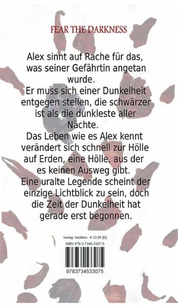 Alex sinnt auf Rache für das, was seiner Gefährtin angetan wurde. Er muss sich einer Dunkelheit stellen, die schwärzer ist, als die dunkelste aller Nächte. Das Leben wie es Alex kennt, verändert sich schnell zur Hölle auf Erden, eine Hölle, aus der es keinen Ausweg gibt. Eine uralte Legende scheint der einzige Lichtblick zu sein, doch die Zeit der Dunkelheit hat gerade erst begonnen.