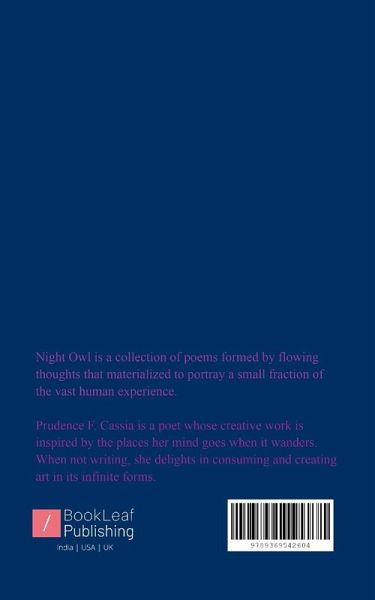 Night Owl is a collection of poems formed by flowing thoughts that materialized to portray a small fraction of the vast human experience.