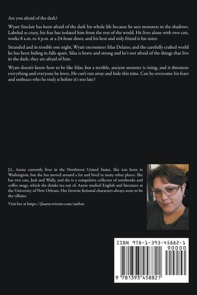 Are you afraid of the dark? Wyatt Sinclair has been afraid of the dark his whole life because he sees monsters in the shadows. Labeled as crazy, his fear has isolated him from the rest of the world. He lives alone with two cats, works 8 a.m. to 4 p.m. at a 24-hour diner, and his best and only friend is his sister. Stranded and in trouble one night, Wyatt encounters Silas Delano, and the carefully crafted world he has been hiding in falls apart. Silas is brave and strong and he's not afraid of the things that live in the dark; they are afraid of him. Wyatt doesn't know how to be like Silas, but a terrible, ancient monster is rising, and it threatens everything and everyone he loves. He can't run away and hide this time. Can he overcome his fears and embrace who he truly is before it's too late?