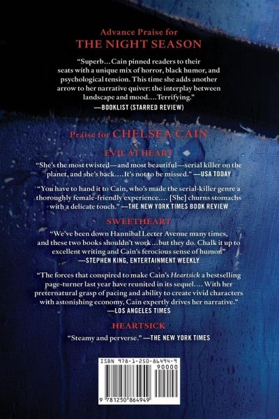 Chelsea Cain is the New York Times bestselling author of The Night Season, Evil at Heart, Sweetheart, and Heartsick. Both Heartsick and Sweetheart were listed in Stephen King's Top Ten Books of the Year in Entertainment Weekly. Chelsea lived the first few years of her life on an Iowa commune, then grew up in Bellingham, WA, where the infamous Green River killer was "the boogieman" of her youth. The true story of the Green River killer's capture was the inspiration for the story of Gretchen and Archie. Cain lives in Portland with her husband and daughter.