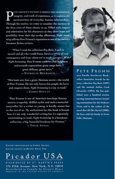 Filled with admiration for his characters and the hope they bring to their day to day dilemmas, Night Swimming has affirmed Pete Fromm's reputation as one of the nation's best writers.
