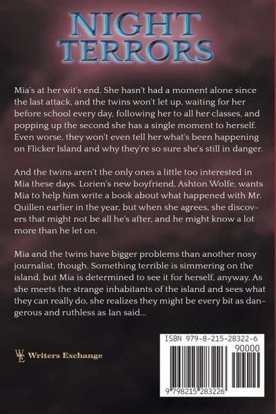 Mia's at her wit's end. She hasn't had a moment alone since the last attack, and the twins won't let up, the twins aren't the only ones a little too interested in Mia these days. Lorien's new boyfriend, Ashton Wolfe, wants Mia to help him write a book about what happened with Mr. Quillen earlier in the year, but when she agrees, she discovers that might not be all he's after, and he might know a lot more than he let on. Waiting for her before school every day, following her to all her classes, and popping up the second she has a single moment to herself. Even worse, they won't even tell her what's been happening on Flicker Island and why they're so sure she's still in danger. And Mia and the twins have bigger problems than another nosy journalist, though. Something terrible is simmering on the island, but Mia is determined to see it for herself, anyway. As she meets the strange inhabitants of the island and sees what they can really do, she realizes they might be every bit as dangerous and ruthless as Ian said. Even the mainland doesn't feel so safe anymore. When she arrives home, Mia starts sharing horrible nightmares with Ian, and she starts to fear they've brought something back with them from the island. As the nightmares become more and more real, Mia and the twins have to figure out who is behind them before the dreams start to leak into reality and destroy them all in this chilling conclusion to the Nightmare Island Series.