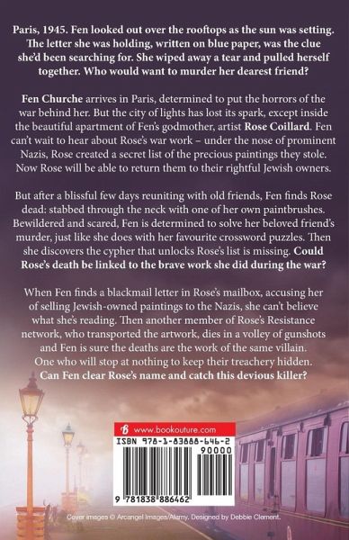 Paris, 1945. Fen looked out over the rooftops as the sun was setting. The letter she was holding, written on blue paper, was the clue she'd been searching for. She wiped away a tear and pulled herself together. Who would want to murder her dearest friend? Fen Churche arrives in Paris, determined to put the horrors of the war behind her. But the city of lights has lost its spark, except inside the beautiful apartment of Fen's godmother, artist Rose Coillard. Fen can't wait to hear about Rose's war work - under the nose of prominent Nazis, Rose created a secret list of the precious paintings they stole. Now Rose will be able to return them to their rightful Jewish owners. But after a blissful few days reuniting with old friends, Fen finds Rose dead: stabbed through the neck with one of her own paintbrushes. Bewildered and scared, Fen is determined to solve her beloved friend's murder, just like she does with her favourite crossword puzzles. Then she discovers the cypher that unlocks Rose's list is missing. Could Rose's death be linked to the brave work she did during the war? When Fen finds a blackmail letter in Rose's mailbox, accusing her of selling Jewish-owned paintings to the Nazis, she can't believe what she's reading. Then another member of Rose's Resistance network, who transported the artwork, dies in a volley of gunshots and Fen is sure the deaths are the work of the same villain. One who will stop at nothing to keep their treachery hidden. Can Fen clear Rose's name and catch this devious killer? You won't be able to put down this utterly addictive historical mystery! The absolutely perfect treat if you love Rhys Bowen, Charles Todd and Jacqueline Winspear. Readers are totally addicted to Fliss Chester! 'I was totally captivated from the very beginning... I was holding my breath... I can't praise this book enough.' Goodreads Reviewer ¿¿¿¿¿¿¿¿¿¿ 'Nail-biting suspense and powerful emotion... A marvellous treat for historical mystery fans... A compulsively readable thriller that has me waiting with bated breath for the next.' Bookish Jottings ¿¿¿¿¿¿¿¿¿¿