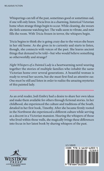 Whisperings can tell of the past, sometimes good or sometimes sad, if one will only listen. Tricia lives in a charming, historical Victorian home when strange things begin to occur. While cleaning, she swears she feels someone watching her. The walls seem to vibrate, and mist fills the room. With Tricia frozen in terror, the whispers begin. Tricia begins to think she is going crazy due to the voices she hears in her old home. As she gives in to curiosity and starts to listen, though, she connects with voices of the past. She learns ancient things that demand to be told-but who would believe something so otherworldly and strange? Night Whispers of a Painted Lady is a heartwarming novel weaving together the stories of multiple families who inhabit the same Victorian home over several generations. A beautiful woman is ready to reveal her secrets, but she must first find an attentive ear. One must be still and listen in order to realize the amazing mysteries of this painted lady.