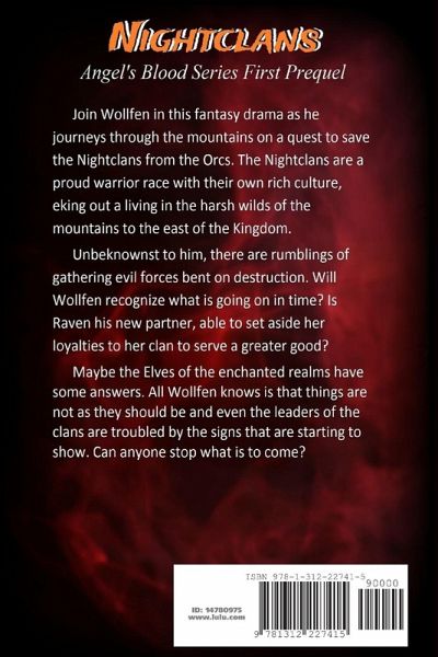 Join Wollfen in this fantasy drama as he journeys through the mountains on a quest to save the Nightclans from the orcs. The Nightclans are a proud warrior race with their own rich culture eking out a living in the harsh wilds of the mountains to the east of the Kingdom. Unbeknownst to Wollfen and others there are rumblings of gathering evil forces bent on destruction. Will Wollfen recognize what is going on in time? Is Raven his new partner able to set aside her loyalties to her clan to serve a greater good? Maybe the elves of the Enchanted realms have some answers. All Wollfen knows is that things are not as they should be and even the leaders of the clans are troubled by the signs that are starting to show. Can anyone stop what is to come? There is action and love with a touch of erotica too as he is swept along by the events unfolding around him. Please enjoy this book that is a prequel to "Angels Blood" now available.
