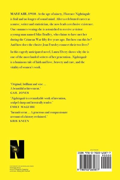 Mayfair, 1910. At the age of ninety, Florence Nightingale is frail and no longer of sound mind. After a celebrated career as a nurse, writer and statistician, she now leads a reclusive existence. One summer evening she is astonished to receive a visitor: a young man named Silas Bradley, who claims to have met her during the Crimean War fifty-five years ago. But how can this be? And how does the elusive Jean Frawley connect their two lives? In this eagerly anticipated novel, Laura Elvery shows why she is one of the most lauded writers of her generation. Nightingale is a luminous tale of faith and love, bravery and care, and the vitality of women's work.