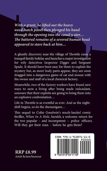 A ghastly discovery near the village of Throttle ruins a tranquil family holiday and launches a major investigation for wily detectives Inspector Digger and Sergeant Spade. It should have been easy for them to explain the mystery but, as more body parts appear, they are soon dragged into a dangerous game of cat and mouse with the owner and staff of a local chemical factory. Meanwhile, two of the factory workers have found new ways to earn a living after being made redundant, unaware that their exploits are going to bring them into an explosive confrontation… Life in Throttle is as eventful as ever. And as the nightshift begins, so do the shenanigans… This sequel to Colin Goodwin's much-lauded comic thriller, When In A Hole, heralds a welcome return for the two popular - and incompetent - police officers. Will they get their man - before he gets them?