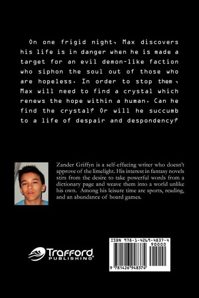 On one frigid night, Max discovers his life is in danger when he is made a target for an evil demon-like faction who siphon the soul out of those who are hopeless. In order to stop them , Max will need to find a crystal which renews the hope within a human. Can he find the crystal? Or will he succumb to a life of despair and despondency?