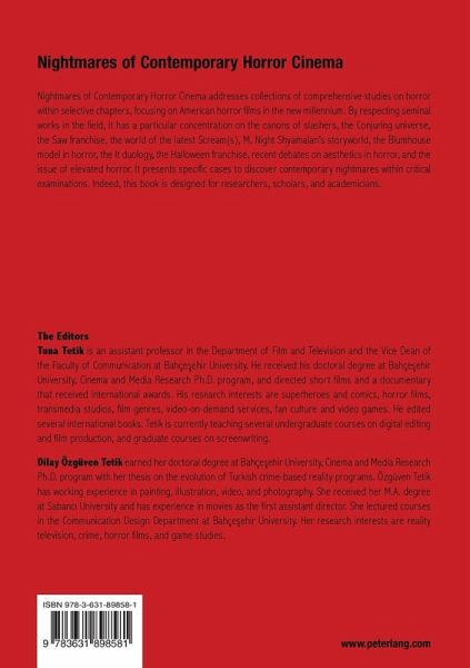 Acknowledgments - Tuna Tetik/Dilay Özgüven Tetik: Preface: Introduction to Nightmares of Contemporary Horror Cinema - Kaya Özkaracalar:Foreword - Kaya Özkaracalar: Post- Classical, Early Modern American Horror Films - Dilay Özgüven Tetik: The Conjuring Movies (2013- 2021) at the Center of the Horror Universe: Exploring the Structure of the Haunted World of James Wan - Tuna Tetik: Anatomy of Jigsaw: The Moral Code and the Legacy of John Kramer in the Saw Franchise - Dilay Özgüven Tetik: Back to the Original: A Contextual Analysis of Scream (1996) and Scream (2022) - Ece Arihan: Redefining the Making of a Genre: A Thorough Investigation of the Blumhouse Model - Tuna Tetik :Horror Meets the Superhero: The Shyamalan Effect in Horror - Burak Bayülgen: The Shell That Pennywise Tried but Failed to Shatter: It (2017) and It Chapter Two (2019) - Ece Arihan: Subverting the Genre: The Evolution of the Final Girl in the Halloween Franchise - Savas Arslan: New Names to Old Villains: Art- , Post- , and Elevated Horrors of the Contemporary - Sertaç Koyuncu: Hellraisers, Cenobites, and Beyond: Masochistic Aesthetic in the Horror Film - List of Tables - Biographies of the Authors.