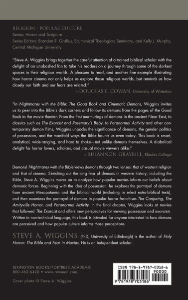 Demons! Nightmares with the Bible views demons through two lenses: that of western religion and that of cinema. Sketching out the long fear of demons in western history, including the Bible, Steve A. Wiggins moves on to analyze how popular movies inform our beliefs about demonic forces. Beginning with the idea of possession, he explores the portrayal of demons from ancient Mesopotamia and the biblical world (including in select extra-biblical texts), and then examines the portrayal of demons in popular horror franchises The Conjuring, The Amityville Horror, and Paranormal Activity. In the final chapter, Wiggins looks at movies that followed The Exorcist and offers new perspectives for viewing possession and exorcism. Written in non-technical language, this book is intended for anyone interested in how demons are perceived and how popular culture informs those perceptions.