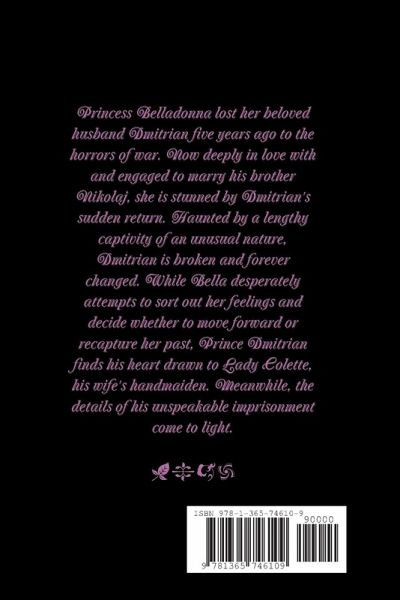 Princess Belladonna lost her beloved husband Dmitrian five years ago to the horrors of war. Now deeply in love with and engaged to marry his brother Nikolaj, she is stunned by Dmitrian's sudden return. Haunted by a lengthy captivity of an unusual nature, Dmitrian is broken and forever changed. While Bella desperately attempts to sort out her feelings and decide whether to move forward or recapture her past, Prince Dmitrian finds his heart drawn to Lady Colette, his wife's handmaiden. Meanwhile, the details of his unspeakable imprisonment come to light. [Also available for e-reader download for only $1.99: preview on your Nook, Kindle, or other ePUB-enabled devices before the release of the hard cover edition with extra materials, including four companion pieces, coming soon!]