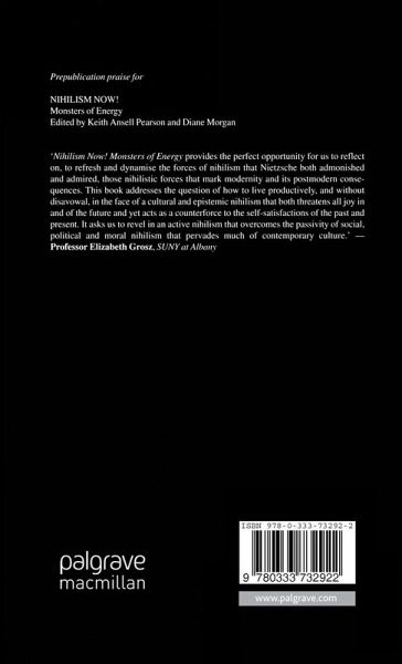 'Nihilism Now! Monsters of Energy provides the perfect opportunity for us to reflect on, to refresh and dynamize the forces of nihilism that Nietzsche both admonished and admired, those nihilistic forces that mark modernity and its postmodern consequences. This book addresses the question of how to live productively, and without disavowal, in the face of a cultural and epistemic nihilism that both threatens all joy in and of the future and yet acts as a counterforce to the self-satisfactions of the past and present. It asks us to revel in an active nihilism that overcomes the passivity of social, political and moral nihilism that pervades much of contemporary culture.' - Professor Elizabeth Grosz, SUNY at Albany