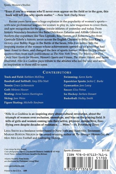 Recent years have seen a huge explosion in the popularity and commercial viability of women's sports - with new professional leagues for women to play in, new magazines to cover them, and recognition for female athletes that is overtaking that of men. Nike Is a Goddess tells the dramatic story of the rise of women's sports over the last century in a series of original narratives focusing on the great female athletes whose success has changed the game and paved the way for the women and girls of today. From historic boundary breakers like Babe Didrikson Zaharias and Althea Gibson to modern-day superstars like Tara Lipinski, Jackie Joyner-Kersee, and Rebecca Lobo, from Gertrude Ederle's historic swim across the English Channel to Billie Jean King's victory over Bobby Riggs in the Battle of the Sexes, Nike Is a Goddess tells the inspiring stories of women opening up an arena that had been closed to them. Written by top female sportswriters from such publications as The New York Times, The Washington Post, Conde Nast Sports for Women, Women's Sports and Fitness, The Miami Herald, and Sports Illustrated, Nike Is a Goddess pays tribute to the athletes who led the way and serves as inspiration to those who will come after.