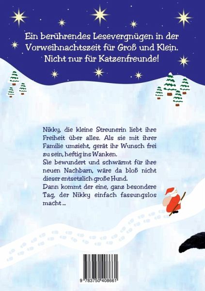 Ein berührendes Lesevergnügen in der Winterzeit für Groß und Klein.Nicht nur für Katzenfreunde!Nikky, die kleine Streunerin, liebt ihre Freiheit über alles. Als sie mit ihrer Familie umzieht, gerät ihr Wunsch frei zu sein heftig ins Wanken.Sie bewundert und schwärmt für ihre neuen Nachbarn, wäre da bloß nicht dieser entsetzlich große Hund!Dann kommt der eine, ganz besondere Tag, der Nikky einfach fassungslos macht ...