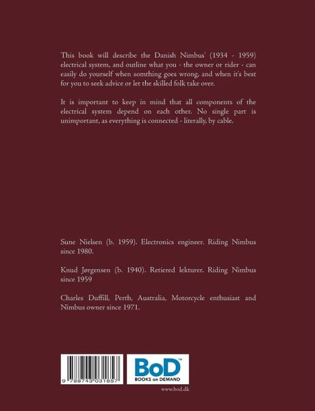 The book describes the Danish Nimbus-C's (1934 - 1959) electrical system, and outline what the owner or rider can easily do himself when somthing goes wrong, and when it's best to seek advice or let the skilled folk take over.