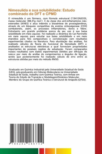 O nimesulida é um fármaco, com fórmula estrutural C13H12N2O5S, massa molecular 308,31g mol-1. É da classe dos anti-inflamatórios não-esteroides (AINES) e atua inibindo a biossíntese de prostaglandinas, através de um bloqueio competitivo da enzima ciclooxigenase (COX) combatendo, assim, os processos inflamatórios, dores e febre. Entretanto um grande problema acerca de seu uso é sua baixa solubilidade em meio aquoso. Foi realizado a dinâmica de Car-Parrinello em meio aquoso para estudar sua baixa solubilidade e em meio etanólico para fins comparativos e corroboração com resultados experimentais citados na literatura. Para elucidação das análises, foi realizado cálculos de Teoria do Funcional de Densidade (DFT) e analisados as estruturas eletrônicas a qual forneciam propriedades importantes de possíveis regiões de solvatação. Foram comparados nossos resultados com dados experimentais obtidos por difração de raios-x por meio de análise de comprimentos e ângulos de ligação, sendo que posteriormente foi realizado cálculo de erro entre as estruturas obtidas por meio do método RMSD.
