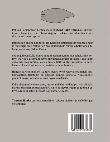 Kalle Honka toimi Lapissa nimismiehenä useilla paikkakunnilla. Hänet muistetaan laajasti Nimis-Kallena. Hänestä on säilynyt paljon juttuja, ja ne ovat usein sellaisia totuuteen perustuvia ja hieman liioiteltuja tarinoita. Lukija voi vapaasti miettiä, mitkä ovat totta ja mitkä sinne päin. Talvisodan ja välirauhan aikana Kalle Honka hoiti nimismiehen pestiä Ranualla, Inarissa ja Petsamossa. Jatkosodassa hän toimi Itä-Karjalan sotilashallinnon Vienan piirissä Oulangan ja Kiestingin alue-esikuntien päällikkönä. Sotareissulla Kalle tapasi myös tulevan vaimonsa Sirkka Vaaran. Sodan jälkeen Hongat muuttivat Inariin. Kallella ja Sirkalla oli valtava määrä hyviä ystäviä, kotimaisia ja ulkomaalaisia. Kirjassa on myös heistä hauskoja tarinoita ja sattumuksia, sillä monen muunkin elämä oli värikästä ja kertomisen arvoista. Oman perheen villit tapahtumat seuraavat mukana koko kirjan ajan. Kalle oli jämerä vallesmanni, muttei mikään tiukkapipo. Hän oli jonkinlainen poikaviikari positiivisessa mielessä elämänsä loppuun saakka. Kalle oli hyvän ruuan ja juoman ystävä. Näkäräinenkin maistui, ja silloin Kalle oli hauskaa juttuseuraa. Laulu irtosi herkästi sopivassa seurassa.