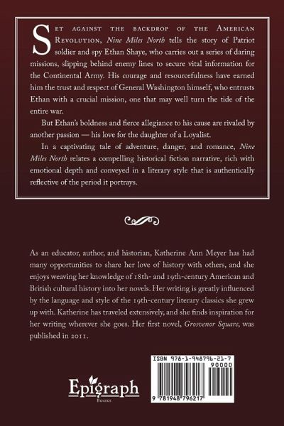 Set against the backdrop of the American Revolution, Nine Miles North tells the story of Patriot soldier and spy Ethan Shaye, who carries out a series of daring missions, slipping behind enemy lines to secure vital information for the Continental Army. His courage and resourcefulness have earned him the trust and respect of General Washington himself, who entrusts Ethan with a crucial mission, one that may well turn the tide of the entire war. But Ethan’s boldness and fierce allegiance to his cause are rivaled by another passion — his love for the daughter of a Loyalist. In a captivating tale of adventure, danger, and romance, Nine Miles North relates a compelling historical fiction narrative, rich with emotional depth and conveyed in a literary style that is authentically reflective of the period it portrays.