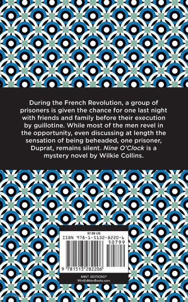 Nine O' Clock (1852) is a novel by Wilkie Collins. Written in the aftermath of Antonina (1850), his successful debut, Nine O' Clock finds the author honing the trademark sense of mystery and psychological unease that would make him a household name around the world. Recognized as an important Victorian novelist and pioneer of detective fiction, Wilkie Collins was a writer with a gift for thoughtful entertainment, stories written for a popular audience that continue to resonate with scholars and readers today. At the height of the French Revolution, a group of prisoners awaiting execution is given the chance at one last night with friends and family. Elated, they feast and drink with their loved ones, exchanging stories of the past and even cracking jokes on the infamous guillotine, the very instrument of death they will face in the morning. Despite this general sense of hopeless joy, one man, Duprat, avoids the trend toward gallows humor, refusing to speak on the subject. Pressed by his friend Marginy, however, a change comes over Duprat, who begins to reveal a strange foresight of his own impending doom. Beyond its sensational plot, Nine O' Clock is a masterpiece of Gothic horror and mystery for seasoned readers of Victorian fiction and newcomers alike. This edition of Wilkie Collins' Nine O' Clock is a classic work of English literature reimagined for modern readers. Since our inception in 2020, Mint Editions has kept sustainability and innovation at the forefront of our mission. Each and every Mint Edition title gets a fresh, professionally typeset manuscript and a dazzling new cover, all while maintaining the integrity of the original book. With thousands of titles in our collection, we aim to spotlight diverse public domain works to help them find modern audiences. Mint Editions celebrates a breadth of literary works, curated from both canonical and overlooked classics from writers around the globe.