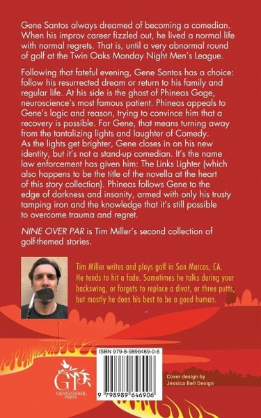 NINE OVER PAR is Tim Miller's second collection of golf-themed stories. At the heart of this collection is a novella about a stand-up comedian that has one last chance to live a life of laughter and comedy. This story also features the ghost of Phineas Gage, neuroscience's most famous patient, as a character and sidekick in an adventure that includes wildfires, NFL football, and traumatic brain injuries. Filling out the collection are flash fiction stories featuring Tim Miller's unique blend of wit and humor. Together with "Nine Under Par" these books are at the intersection of golf and literary fiction.