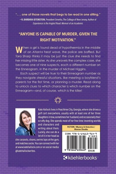 "Anyone is capable of murder, given the right motivation." When a girl is found dead of hypothermia in the middle of an Atlanta heat wave, the police are baffled. But Tara Sharp thinks it may be just the clue she needs to find her missing little sister. As she unravels the complex case, she becomes one of nine suspects, each a different number on the Enneagram, in the murder of Michael Higgins. Each suspect will be true to their Enneagram number as they navigate stressful situations, like meeting a boyfriend's parents for the first time, or planning a murder. Read along to unlock clues to which character is which number on the Enneagram-and, of course, which is the killer!