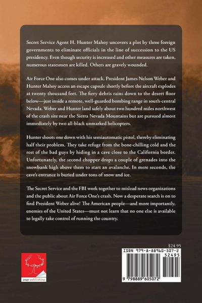 Secret Service Agent H. Hunter Mahoy uncovers a plot by three foreign governments to eliminate officials in the line of succession to the US presidency. Even though security is increased and other measures are taken, numerous statesmen are killed. Others are gravely wounded. Air Force One also comes under attack. President James Nelson Weber and Hunter Mahoy access an escape capsule shortly before the aircraft explodes at twenty thousand feet. The fiery debris rains down to the desert floor below--just inside a remote, well-guarded bombing range in south-central Nevada. Weber and Hunter land safely about two hundred miles northwest of the crash site near the Sierra Nevada Mountains but are pursued almost immediately by two all-black unmarked helicopters. Hunter shoots one down with his semiautomatic pistol, thereby eliminating half their problem. They take refuge from the bone-chilling cold and the rest of the bad guys by hiding in a cave close to the California border. Unfortunately, the second chopper drops a couple of grenades into the snowbank high above them to start an avalanche. In mere seconds, the cave's entrance is buried under tons of snow and ice. The Secret Service and the FBI work together to mislead news organizations and the public about Air Force One's crash. Now a desperate search is on to find President Weber alive! The American people--and more importantly, enemies of the United States--must not learn that no one else is available to legally take control of running the country.