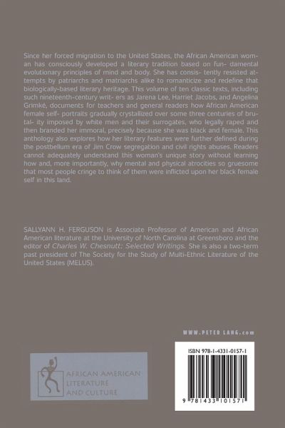 Since her forced migration to the United States, the African American woman has consciously developed a literary tradition based on fundamental evolutionary principles of mind and body. She has consistently resisted attempts by patriarchs and matriarchs alike to romanticize and redefine that biologically-based literary heritage. This volume of ten classic texts, including such nineteenth-century writers as Jarena Lee, Harriet Jacobs, and Angelina Grimké, documents for teachers and general readers how African American female self-portraits gradually crystallized over some three centuries of brutality imposed by white men and their surrogates, who legally raped and then branded her immoral, precisely because she was black and female. This anthology also explores how her literary features were further defined during the postbellum era of Jim Crow segregation and civil rights abuses. Readers cannot adequately understand this woman's unique story without learning how and, more importantly, why mental and physical atrocities so gruesome that most people cringe to think of them were inflicted upon her black female self in this land.