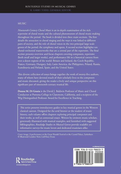 Nineteenth-Century Choral Music is an in-depth examination of the rich repertoire of choral music and the cultural phenomenon of choral music making throughout the period. The book is divided into three main sections. The first details the attraction to choral singing and the ways it was linked to different parts of society, and to the role of choral voices in the two principal large-scale genres of the period: the symphony and opera. A second section highlights ten choral-orchestral masterworks that are a central part of the repertoire. The final section presents overview and focus chapters covering composers, repertoire (both small and larger works), and performance life in an historical context from over a dozen regions of the world: Britain and Ireland, the Czech Republic, France, Germany, Hungary, Italy, Latin America, the Philippines, Poland, Russia, Scandinavia and Finland, Spain, and the United States. This diverse collection of essays brings together the work of 25 authors, many of whom have devoted much of their scholarly lives to the composers and music discussed, giving the reader a lively and unique perspective on this significant part of nineteenth-century musical life.