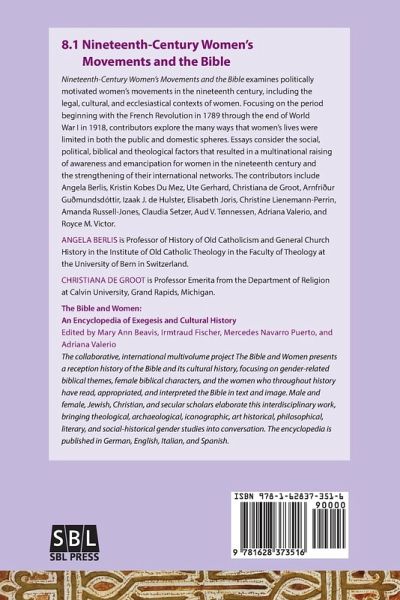 Nineteenth-Century Women's Movements and the Bible examines politically motivated women's movements in the nineteenth century, including the legal, cultural, and ecclesiastical contexts of women. Focusing on the period beginning with the French Revolution in 1789 through the end of World War I in 1918, contributors explore the many ways that women's lives were limited in both the public and domestic spheres. Essays consider the social, political, biblical, and theological factors that resulted in a multinational raising of awareness and emancipation for women in the nineteenth century and the strengthening of their international networks.