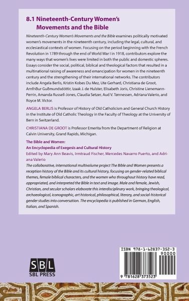 Nineteenth-Century Women's Movements and the Bible examines politically motivated women's movements in the nineteenth century, including the legal, cultural, and ecclesiastical contexts of women. Focusing on the period beginning with the French Revolution in 1789 through the end of World War I in 1918, contributors explore the many ways that women's lives were limited in both the public and domestic spheres. Essays consider the social, political, biblical, and theological factors that resulted in a multinational raising of awareness and emancipation for women in the nineteenth century and the strengthening of their international networks.