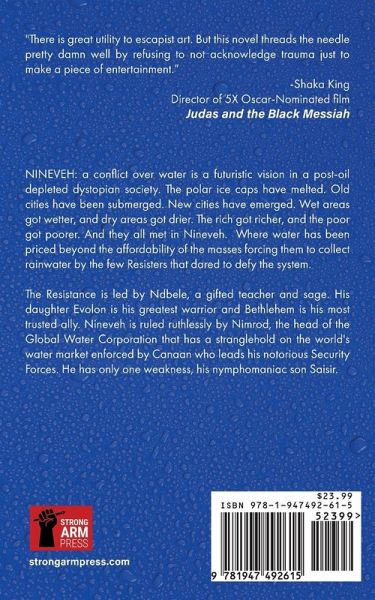 Wet areas got wetter and dry areas got drier. The rich got richer, and the poor got poorer. And they all met in Nineveh. A massive global drought combined with an epic contamination of the world's limited fresh water supply combined with the privatization of the remaining unpolluted aquifers has created a crisis of biblical proportions. As a result, water has been priced beyond the affordability of the masses, forcing them to collect rainwater which constitutes the new contraband. With a mind-altering drug introduced into the limited public supply, there were few resisters that dared to defy the ultimate fascist system. The Resistance is led by Ndbele, a gifted teacher and sage. His daughter Evolon is his greatest warrior, and Bethlehem is his most trusted ally. Nineveh is ruled ruthlessly by Nimrod, the head of the Global Water Corporation. With Canaan, the leader of his Security Forces, he has a complete stranglehold on the world's water market. He has only one weakness, his nymphomaniac son Saisir.