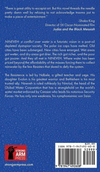 Wet areas got wetter and dry areas got drier. The rich got richer, and the poor got poorer. And they all met in Nineveh. A massive global drought combined with an epic contamination of the world's limited fresh water supply combined with the privatization of the remaining unpolluted aquifers has created a crisis of biblical proportions. As a result, water has been priced beyond the affordability of the masses, forcing them to collect rainwater which constitutes the new contraband. With a mind-altering drug introduced into the limited public supply, there were few resisters that dared to defy the ultimate fascist system. The Resistance is led by Ndbele, a gifted teacher and sage. His daughter Evolon is his greatest warrior, and Bethlehem is his most trusted ally. Nineveh is ruled ruthlessly by Nimrod, the head of the Global Water Corporation. With Canaan, the leader of his Security Forces, he has a complete stranglehold on the world's water market. He has only one weakness, his nymphomaniac son Saisir.