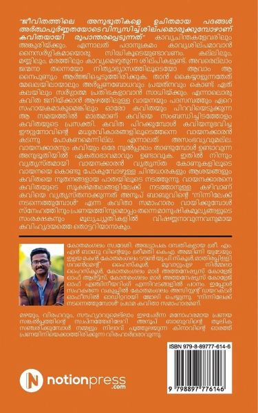 "Poetry is transformed into sculpture when the experiences of life are meaningfully arranged and words are used" Poetry can also sprout in people. But for it to become a poetic sculpture in a word order, there must be a natural ability. There are sculptors who write poetry on stone, soil, and wood. All of them have acquired that skill either by birth or through constant practice. No matter what field they are in, with dedication and effort, they can become creative talents in any art. So, although deep reading and vocabulary are very helpful in the birth of a poem, poetry is relevant to the poet only at that time when each poem is born. The reader does not necessarily have to go through the sweet feelings of pain experienced by the poet when the poem is born. But it is not impossible. There is a sense of unity in the feeling that arises when the reader and the poet cross the same thread bridge. Unlike this, when the reader takes the reading through different angles, the streams of thought and ideas lead the poem along a new path. The ability to lead the reader to the subtle levels of the poem makes the poet different. When reading Anoop Babu's collection of poems' Ninnilekk Nadannethumpol ' ("When Walking Towards You") along with love and romance, one can touch the heart of the poet, who is the protector of human values and is saddened by the decline of values.