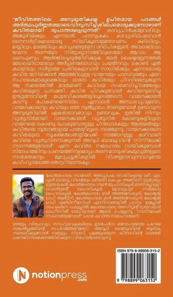 "Poetry is transformed into sculpture when the experiences of life are meaningfully arranged and words are used" Poetry can also sprout in people. But for it to become a poetic sculpture in a word order, there must be a natural ability. There are sculptors who write poetry on stone, soil, and wood. All of them have acquired that skill either by birth or through constant practice. No matter what field they are in, with dedication and effort, they can become creative talents in any art. So, although deep reading and vocabulary are very helpful in the birth of a poem, poetry is relevant to the poet only at that time when each poem is born. The reader does not necessarily have to go through the sweet feelings of pain experienced by the poet when the poem is born. But it is not impossible. There is a sense of unity in the feeling that arises when the reader and the poet cross the same thread bridge. Unlike this, when the reader takes the reading through different angles, the streams of thought and ideas lead the poem along a new path. The ability to lead the reader to the subtle levels of the poem makes the poet different. When reading Anoop Babu's collection of poems' Ninnilekk Nadannethumpol ' ("When Walking Towards You") along with love and romance, one can touch the heart of the poet, who is the protector of human values and is saddened by the decline of values.