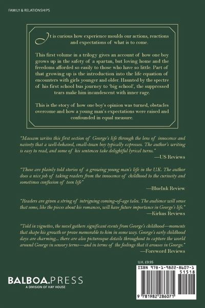 It is curious how experience moulds our actions, reactions and expectations of what is to come. This first volume in a trilogy gives an account of how one boy grows up in the safety of a Spartan, but loving home and the freedoms afforded so easily to those who have so little. Part of that growing up is the introduction into the life equation of encounters with girls young and older. Haunted by the spectre of his first school bus journey to 'big school', the suppressed tears make him incandescent with inner rage. This is the story of how one boy's opinion was turned, obstacles overcome and how a young man's expectations were raised and confounded in equal measure.