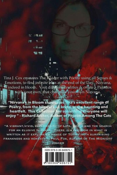Tina J. Cox ensnares The Reader with Poetry using all Senses and Emotions, to find infinite Bliss at the end of the Day. Nirvana is indeed in bloom. Visit different realities and create a Paradox with your own; whatever your Nirvana.
