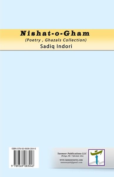 Poetry is the highest form of art. In the construction of which different elements seem to be working; But these elements are interconnected in such a subtle way that to separate them would be to dull its aesthetic life. Poetry is based on imagination, the higher the flight of the poet's thoughts and the more exaggeration in the essay, the more beautiful the poem will be. Sadiq Indori (1917-1984) was a reknown poet of Madhya Pradesh. He was also the father of a well known Urdu personality Aijaz Ubaid. He was well known for his knowledge of Urooz, and was the "Ustad" of a number of poets, including the famous poet Rahat Indori. "Nishat-o-Gham (Joy and sorrow)" is a collection of selected Ghazals by Sadiq Indori.