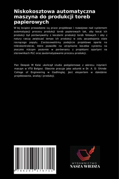 W tej ksi¿¿ce prowadzone s¿ prace projektowe i rozwojowe nad systemem automatyzacji procesu produkcji toreb papierowych tak, aby koszt ich produkcji by¿ porównywalny z kosztami produkcji toreb foliowych i aby z natury rzeczy zwi¿kszä tempo ich produkcji w celu zaspokojenia stale rosn¿cego popytu. Zastosowali¿my podej¿cie projektowe oparte na mikrokontrolerze, które pozwoli¿o na utrzymanie kosztów systemu na znacznie ni¿szym poziomie w porównaniu z projektami opartymi na sterownikach PLC oraz zautomatyzowanie procesu produkcji.