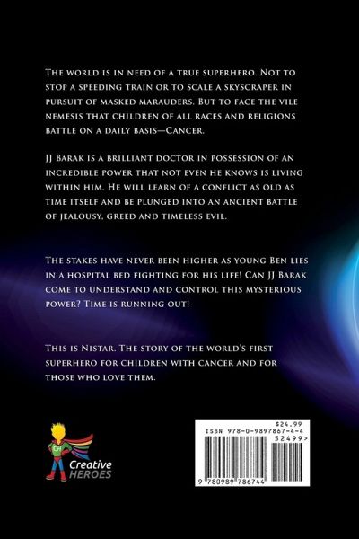 The world is in need of a superhero. Not to stop a speeding train, or to scale a skyscraper in pursuit of masked marauders. But to face the vile nemesis that children of all races and religions battle on a daily basis - cancer. Nistar is a 116 page, full color graphic novel about JJ Barak, the world's first superhero for children fighting cancer, illustrated by renowned comic book artist Josef Rubinstein. Foreword written by Michael Uslan, executive producer of the Batman movie franchise. Nistar tells the tale of a young doctor, JJ Barak, who discovers a mystical stone with untapped powers. He attempts to harness its powers and save the life of one of his patients fighting cancer. His journey takes him out of the cancer ward and into a parallel realm called Nistar, a place where all things intangible, including a person's thoughts, dreams, and fantasies, manifest themselves in physical form. It is in this place that JJ Barak confronts Karkin, the Demon of Disease, in an epic battle against childhood cancer. Along the way para-human characters guide our hero on his turbulent journey and draw the reader into a highly imaginative, page turning adventure.