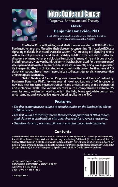 General Overview.- Nitric Oxide and Cancer: An Overview.- Nitric Oxide and the Pathogenesis of Cancer.- A Role for eNOS in Oncogenic Ras-Driven Cancer.- Dual Role of Nitric Oxide in Cancer Biology.- Nitric Oxide Expression in Cancer.- Dual Roles of Nitric Oxide in Protecting or Inducing Cell Death.- S-Nitrosylation - How Cancer Cells Say NO to Cell Death.- Cytotoxic and Protective Activity of Nitric Oxide in Cancers.- Cytotoxic/Protective Activity of Nitric Oxide in Cancer.- Nitric Oxide and Life or Death of Human Leukemia Cells.- Inhibition of Apoptosis by Endogenous Nitric Oxide in Chronic Lymphocytic Leukaemia.- Role of Nitric Oxide in Metastasis.- Nitric Oxide: A Rate-Limiting Factor for Metastases Development.- Nitric Oxide Inhibits Tumor Cell Metastasis via Dysregulation of the NF-?B/Snail/RKIP Loop.- Nitric Oxide as a Sensitizing Agent for Chem-Radio-Immunotherapy.- Sensitizing Effect of Nitric Oxide to Cytotoxic Stimuli.- Nitric Oxide Is a Promising Enhancer for Cancer Therapy.- Role of Nitric Oxide for Modulation of Cancer Therapy Resistance.- Breaking Resistance: Role of Nitric Oxide in the Sensitization of Cancer Cells to Chemo- and immunotherapy.- Prognostic Significance of NOS and NO.- Prognostic Significance of iNOS in Human Melanoma.- Prognostic Significance of iNOS in Hepatocellular Carcinoma.- Prognostic Significance of iNOS in Esophageal Cancer.- Prognostic Significance of Nitrative DNA Damage in Infection- and Inflammation-Related Carcinogenesis.- Therapeutic Applications of Nitric Oxide.- Nitric Oxide-Releasing Molecules for Cancer Therapy and Chemoprevention.- Nitric Oxide: Monotherapy or Sensitiser to Conventional Cancer Treatments?.- Therapeutic Applications of Nitric Oxide for Malignant Tumor in Animal Models and Human Studies.-(S,R)-3-Phenyl-4,5-dihydro-5-isoxazole acetic acid-Nitric Oxide (GIT-27NO) - New Dress for Nitric Oxide Mission.- Nitric Oxide Donors Are a New Class of Anti-cancer Therapeutics for the Reversal of Resistance and Inhibition of Metastasis.- Role of Inducible Nitric Oxide Synthase (iNOS) in Regulation of Nitric Oxide (NO) Production and Stabilization of HIF-1?: Potential Role of Se-Methylselenocysteine (MSC), an Antioxidant Multi-targeted Small Molecule.