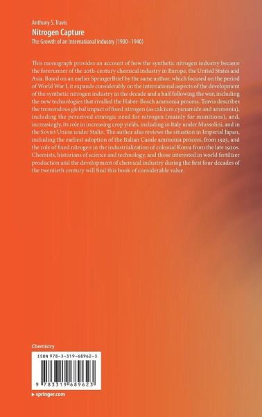 This monograph provides an account of how the synthetic nitrogen industry became the forerunner of the 20th-century chemical industry in Europe, the United States and Asia. Based on an earlier SpringerBrief by the same author, which focused on the period of World War I, it expands considerably on the international aspects of the development of the synthetic nitrogen industry in the decade and a half following the war, including the new technologies that rivalled the Haber-Bosch ammonia process. Travis describes the tremendous global impact of fixed nitrogen (as calcium cyanamide and ammonia), including the perceived strategic need for nitrogen (mainly for munitions), and, increasingly, its role in increasing crop yields, including in Italy under Mussolini, and in the Soviet Union under Stalin. The author also reviews the situation in Imperial Japan, including the earliest adoption of the Italian Casale ammonia process, from 1923, and the role of fixed nitrogen in the industrialization of colonial Korea from the late 1920s. Chemists, historians of science and technology, and those interested in world fertilizer production and the development of chemical industry during the first four decades of the twentieth century will find this book of considerable value.