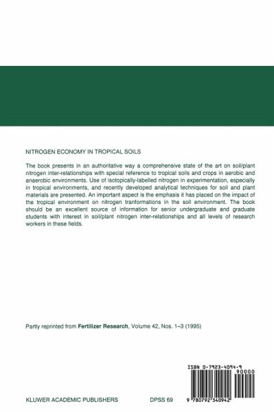 Nitrogen Economy in Tropical Soils presents an authoritative and comprehensive state-of-the-art review on soil/plant nitrogen inter-relationships, with special reference to tropical soils and crops in aerobic and anaerobic environments. Use of isotopically labelled nitrogen in experimentation, especially in tropical environments, and recently developed analytical techniques for soil and plant materials are presented. An important aspect is the emphasis placed on the impact of the tropical environment on nitrogen transformations in the soil environment. This book should be an excellent source of information for senior undergraduate and graduate students with interest in soil/plant nitrogen inter-relationships, and for all levels of research workers in these fields.